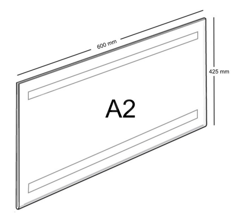 Kapsa na 1 popisku je vyrobena z kvalitního plexiskla tloušťky 2 mm s UV ochranou, ohnutím do "V" s ohybem - základnou po delší straně, pro vložení 1 ks plakátu (jmenovky, nabídky, cenovky). Kapsa je ze zadní strany opatřena pěnovou samolepkou. Po odstranění ochranné (barevné) fólie se lepí na čistý, odmaštený i částečně nerovný podklad (nehoblované dřevo, zeď atd.) Vložené jmenovky (nabídky, ceníky) lze pak jednoduchým způsobem aktuálně měnit. Doporučujeme použítí v interiéru pro jmenovky na dveře, obrazové "MENU" v restauracích, aktuální nabídky CK, nabídky nemovitostí RK, či jiné. Kapsa je na výšku i šířku větší o 5 mm než formát vkládaného papíru. Orientace kapsy na šířku. Rozměry v mm.